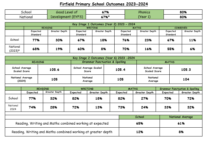 To compare our school's performance to others in the area and nationally, please click here to access the Department for Education's Performance Tables webpage.